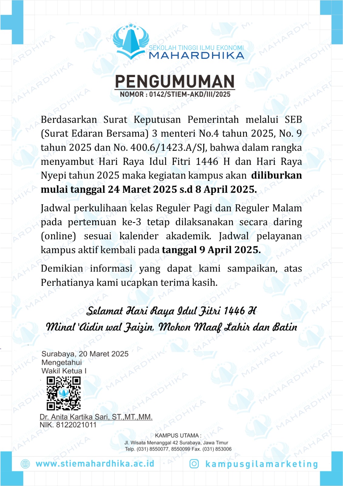 Pengumuman Libur Hari Raya Idul Fitri 1446 H